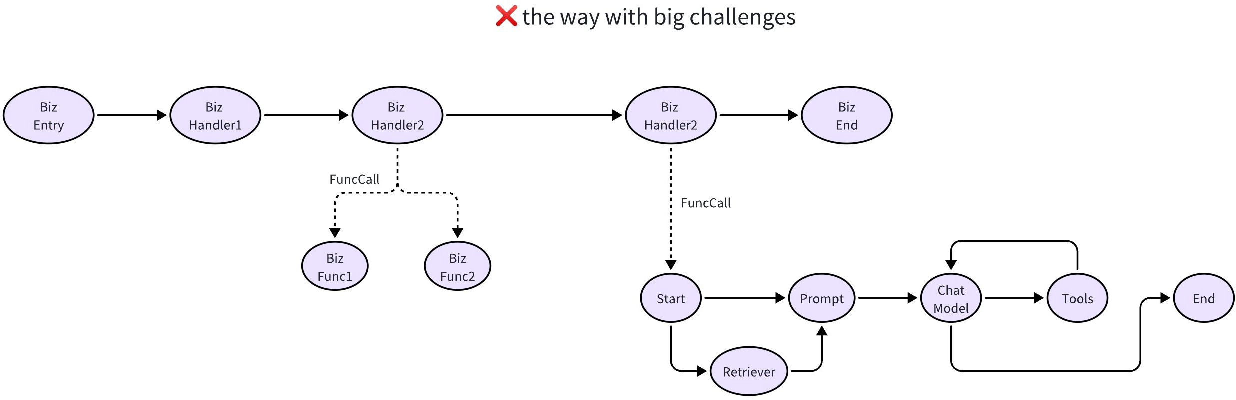 - If the logical division and combination are carried out in a graph orchestration manner, it will increase the difficulty of business logic development.