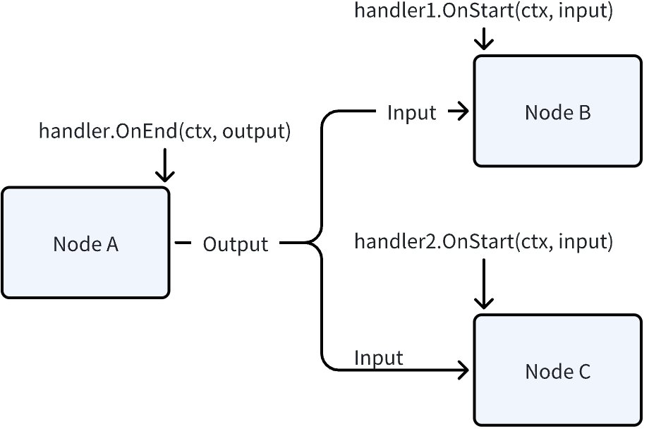 If a Graph Node triggers the Callback, since the Node cannot obtain the internal intermediate state information of the component, it can only get the input and output specified by the component interface. For Chat Model, this would be []*schema.Message and *schema.Message.
