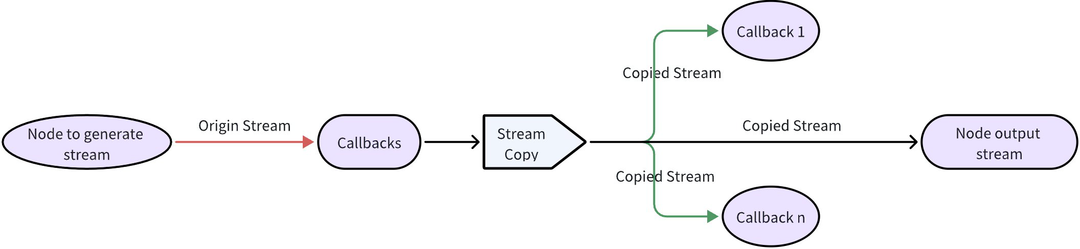 Take a node like ChatModel, which has true stream output, for example. When there is a Callback aspect, the output stream from ChatModel: