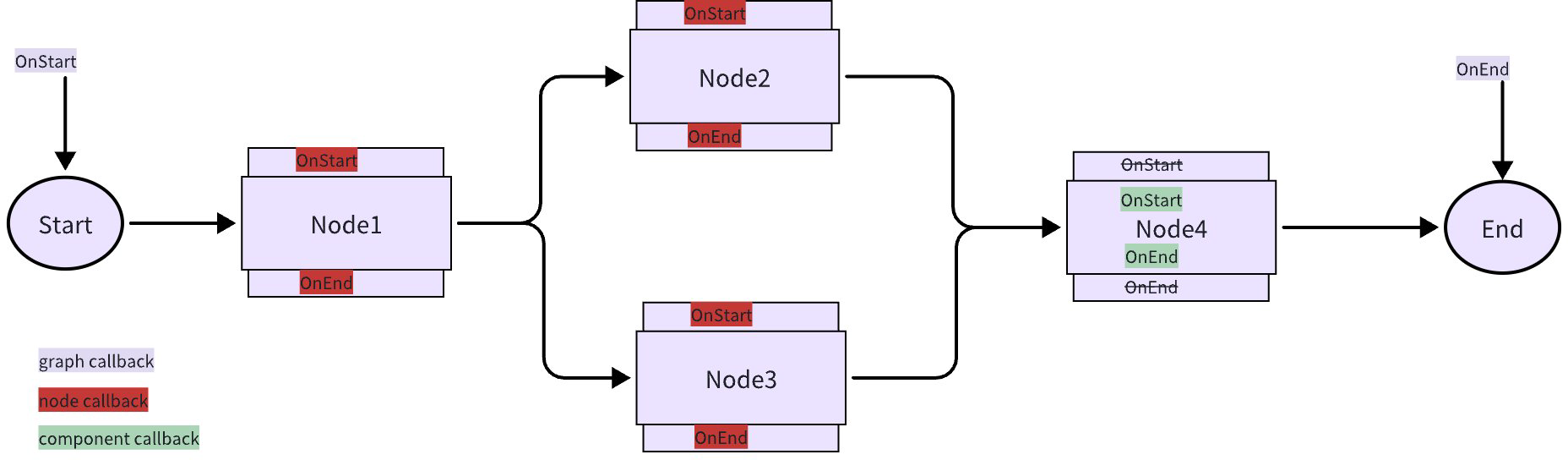 It is worth noting that a graph is also a kind of component, so a graph callback is also a special form of component callback. According to the definition of Node Callback, when the component inside the Node implements the perception and processing of the trigger moments, the Node will directly reuse the Component’s implementation and will not implement the Node Callback again. This means when a graph is added to another Graph as a Node through the AddGraphNode method, this Node will reuse the internal graph’s graph callback.